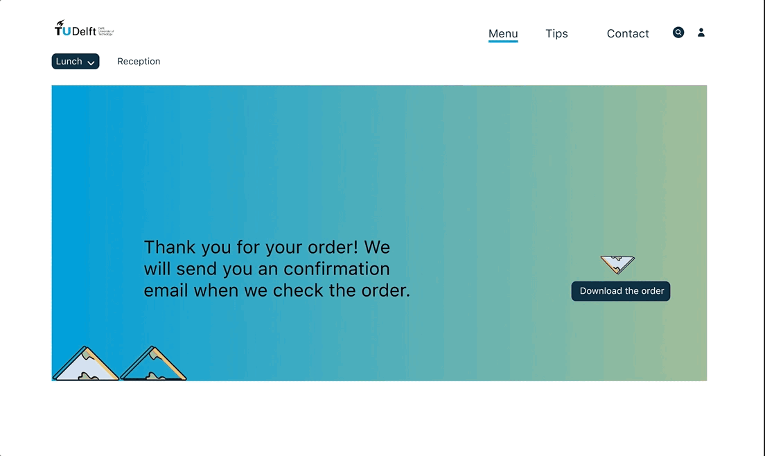 The banqueting service: TUDelft will have hundreds of daily meetings and lectures in different faculties with diverse people. Usually, it is a ritual that provides the audience with food. Normally it is provided during during, after, or before the meeting. Conference organizers must tell the security to book the food previously through the current website.