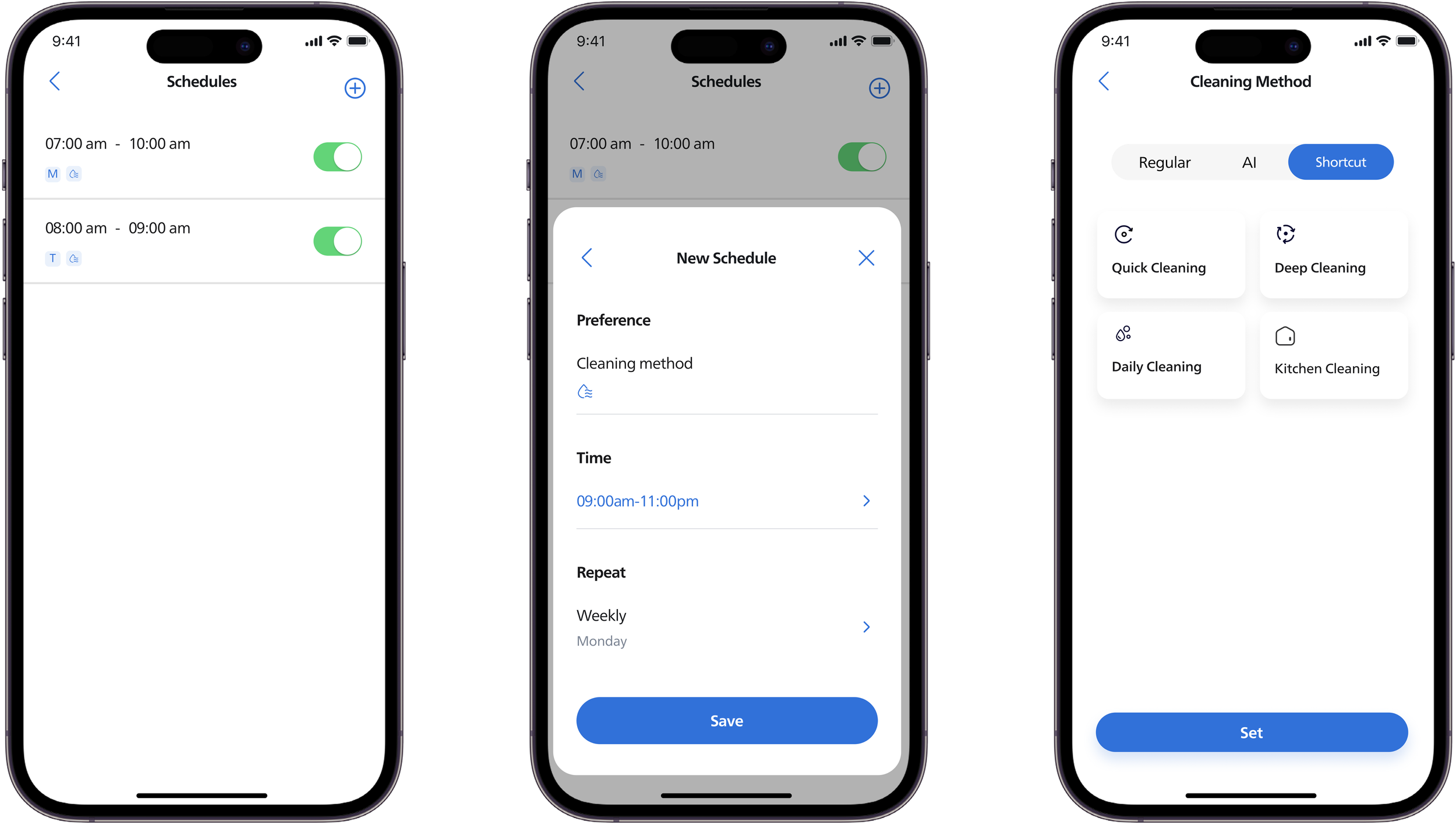For some user, they prefer to schedule their cleaning task previously, the shorcut selection is also engage in the cleaning method options