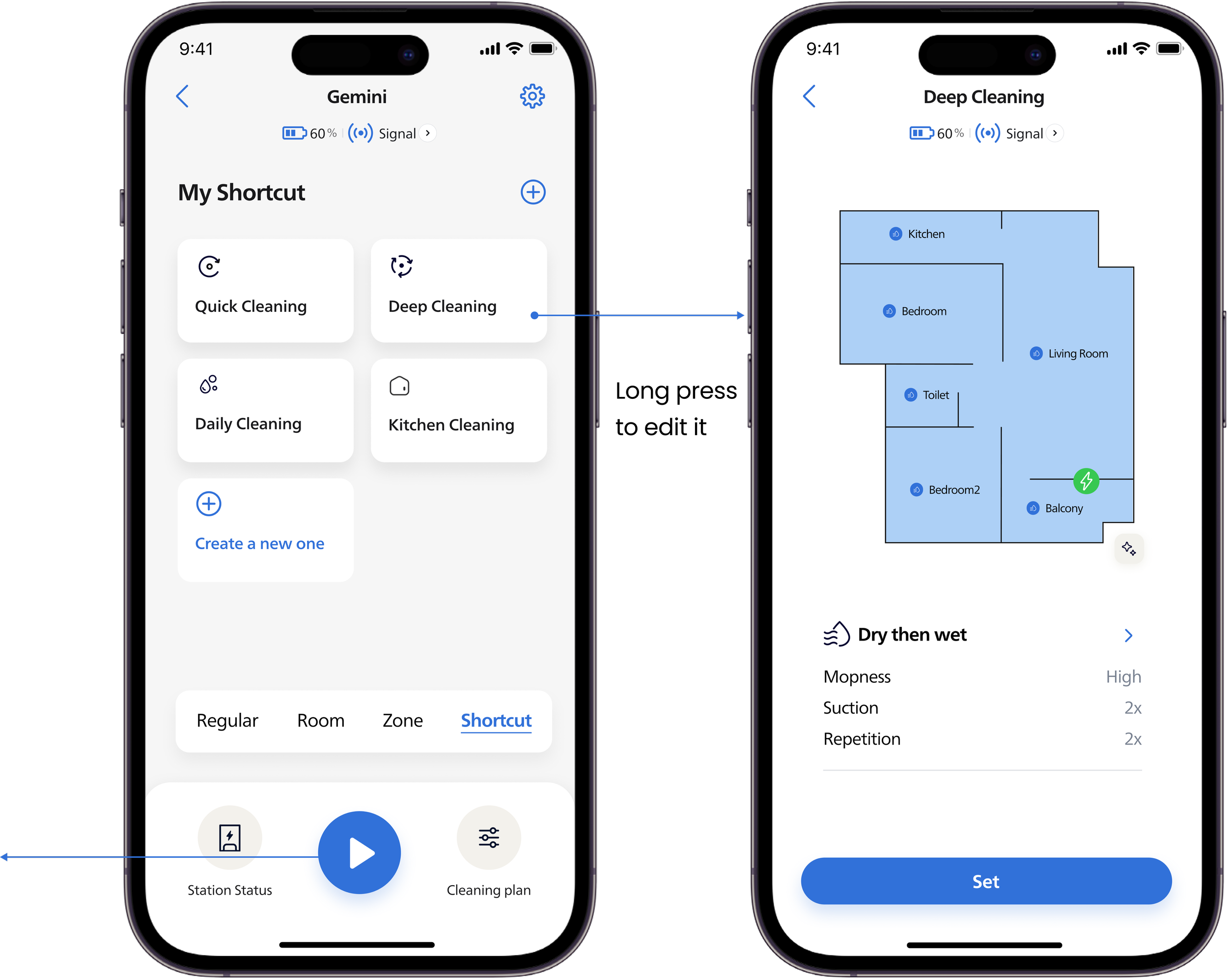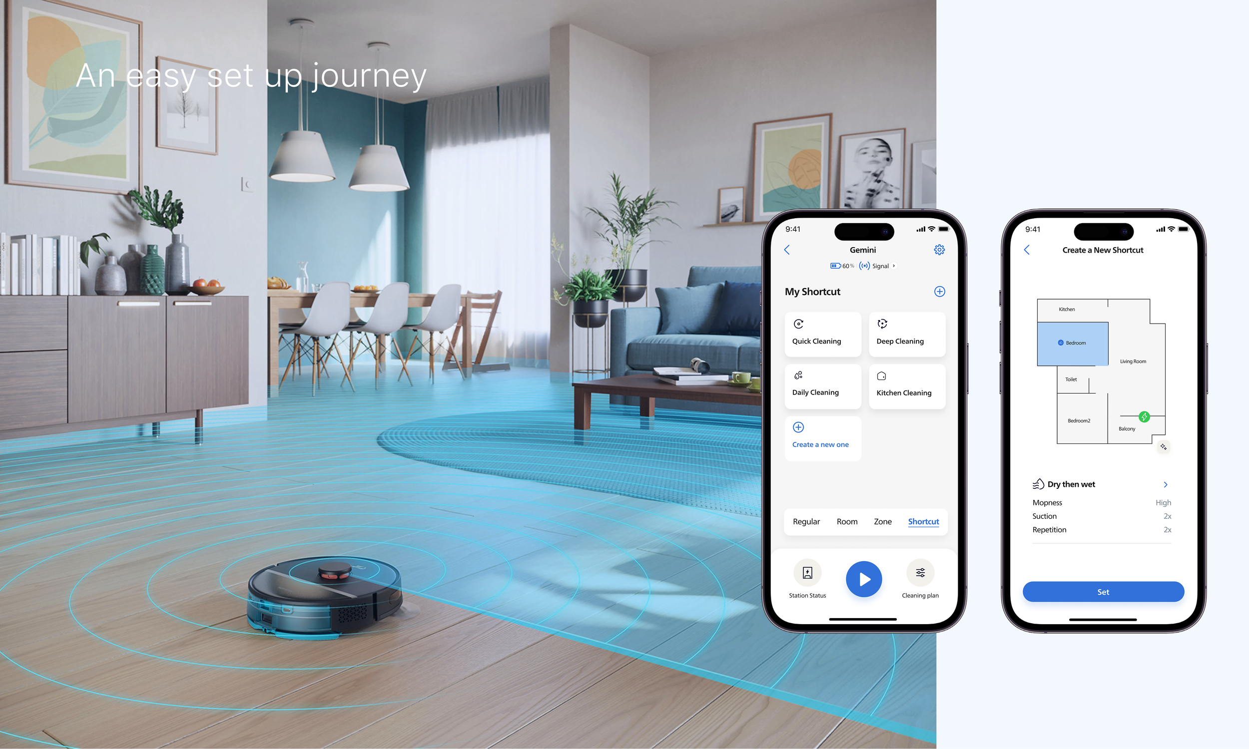 Add the shortcut which can help user to start a quickly cleaning in the home page.Pre-configured bundles of room + mode + intensity. Fast and customization.