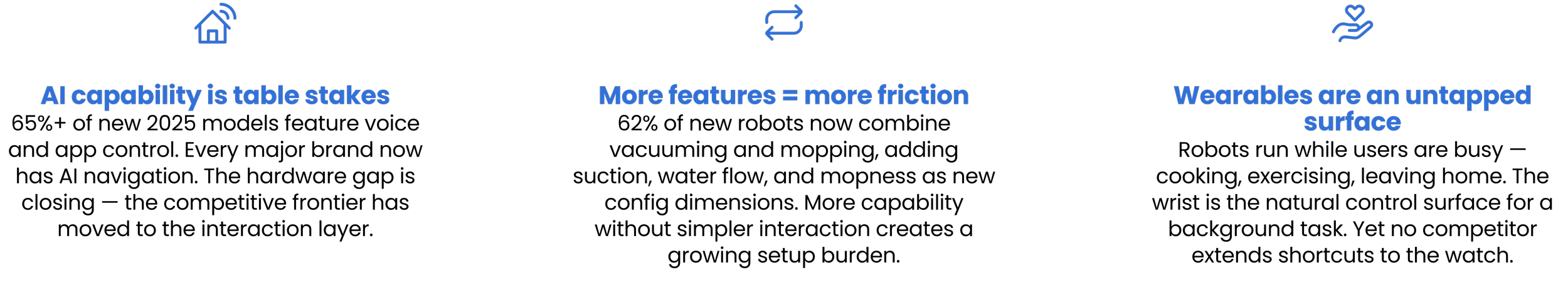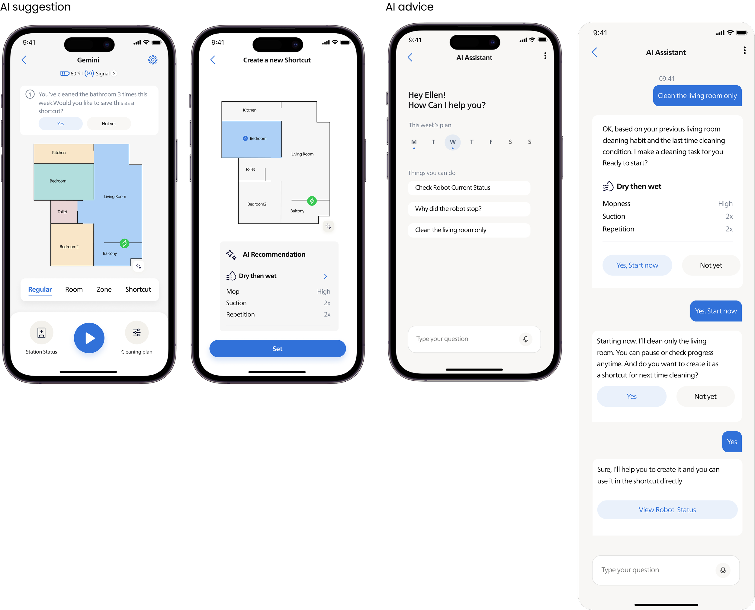 This research was conducted to understand how leading robotic vacuum applications handle AI-assisted interactions and customised cleaning workflows. The goal was to identify where existing products fall short of user expectations, and to define the design opportunity for the Gemini app's next generation experience.