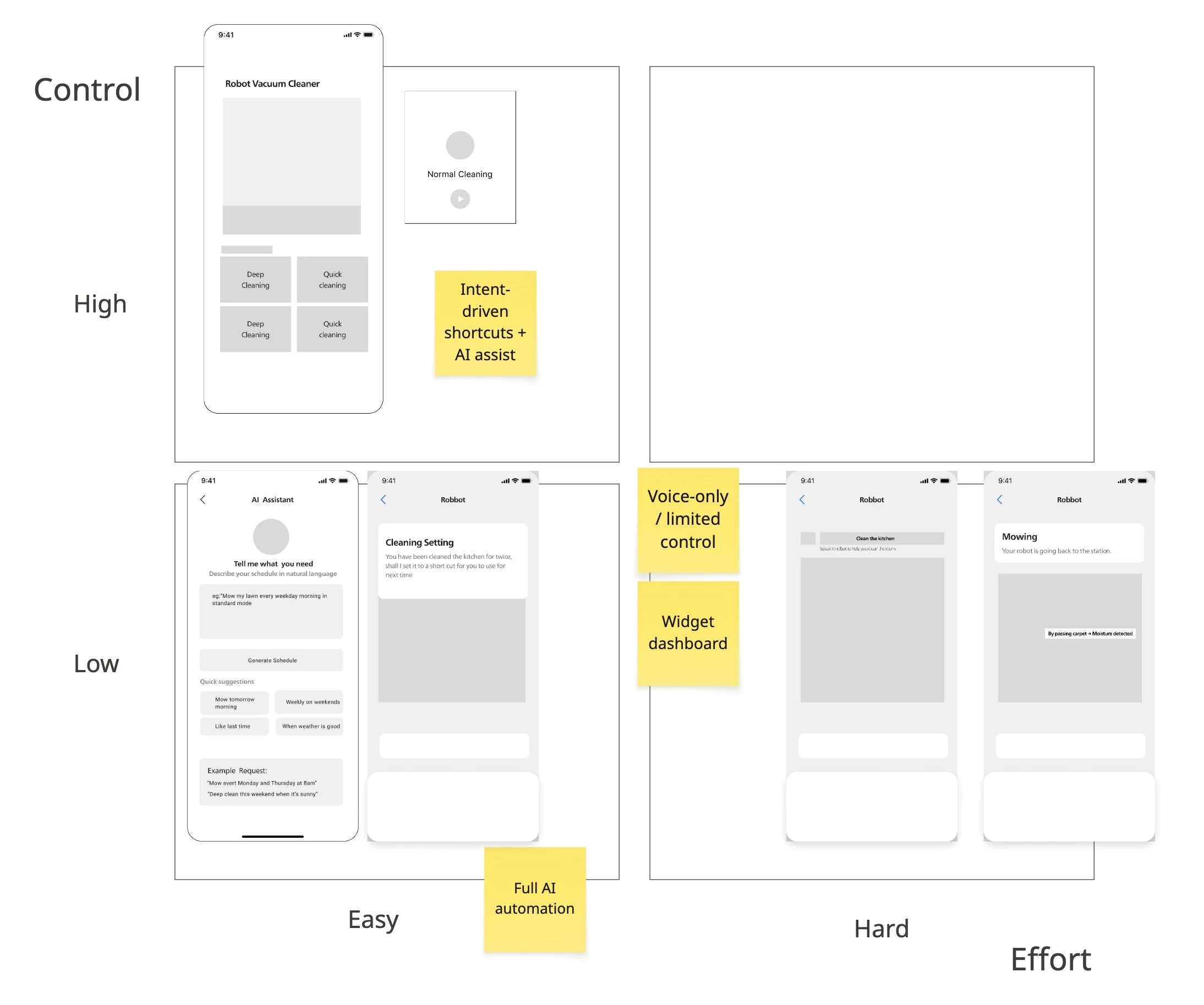each representing a different interaction philosophy.The final concept was selected based on the balance between user effort and control.