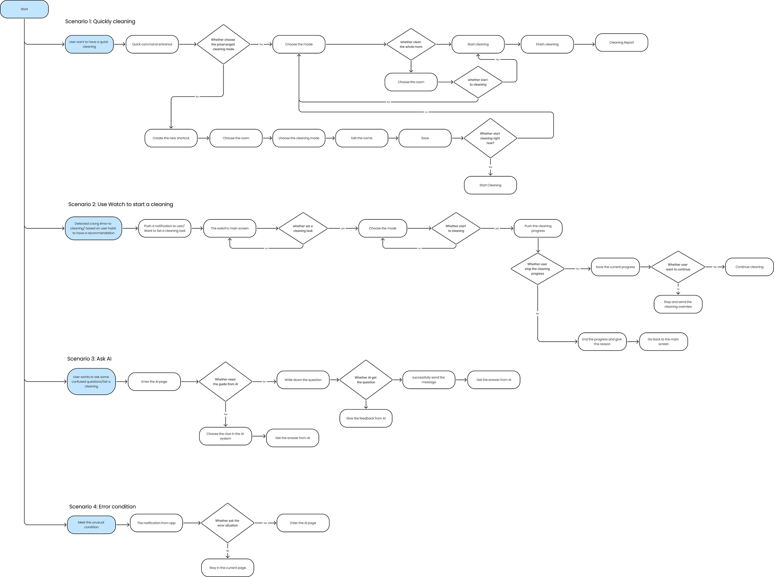After user choose the cleaning mode, they can just start cleaning from here