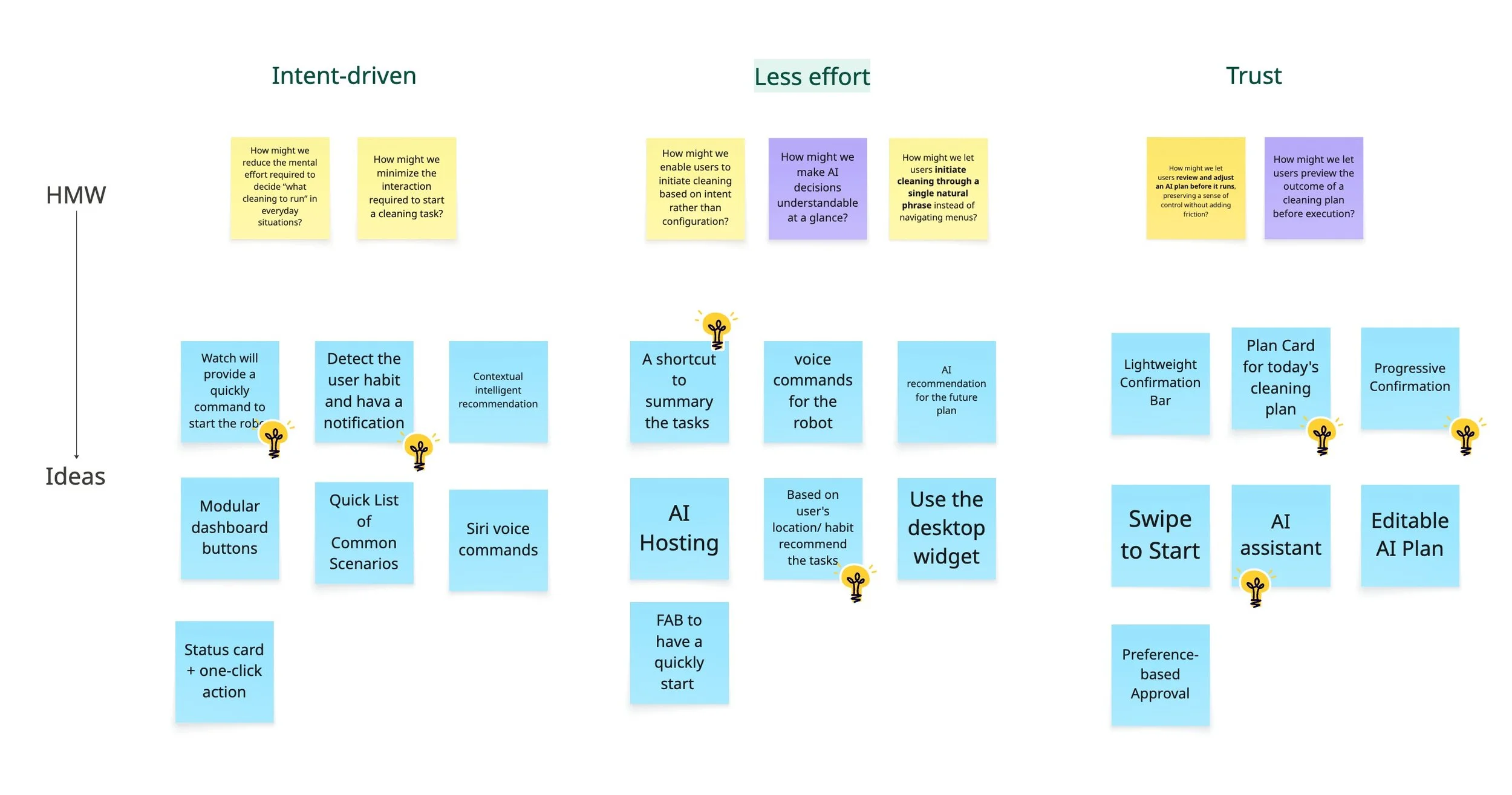 Ideas were clustered across HMWs into three distinct concepts,
